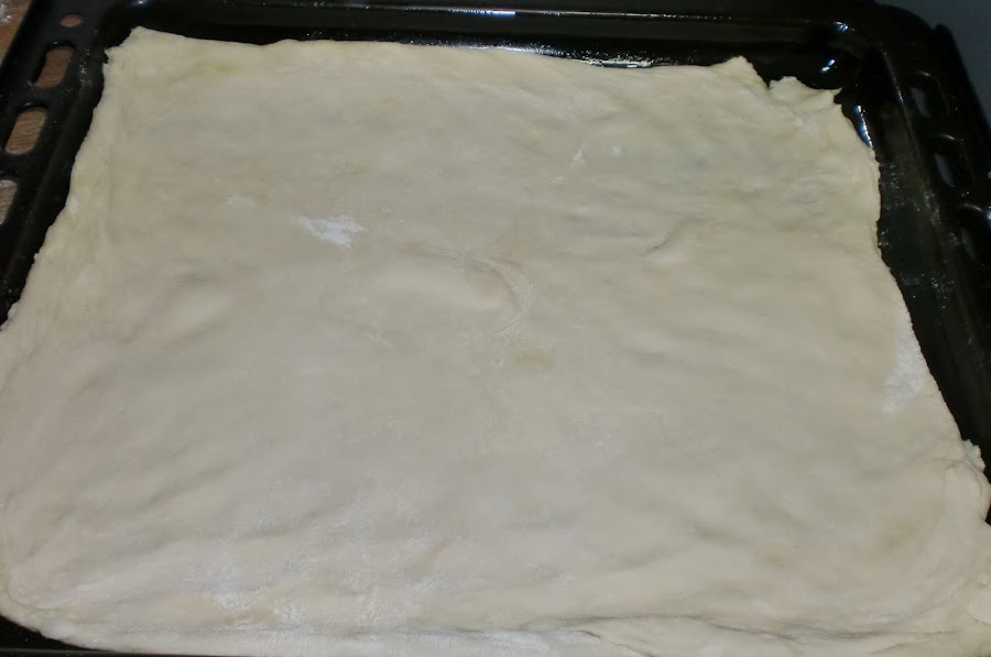 Ponemos aceite en una llanda de horno y empezamos a estirar la masa hasta alcanzar el grosor que queramos.