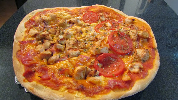 - Pollo (salteado primero en una sartén con sal, pimienta, tomillo y salsa Perrins)