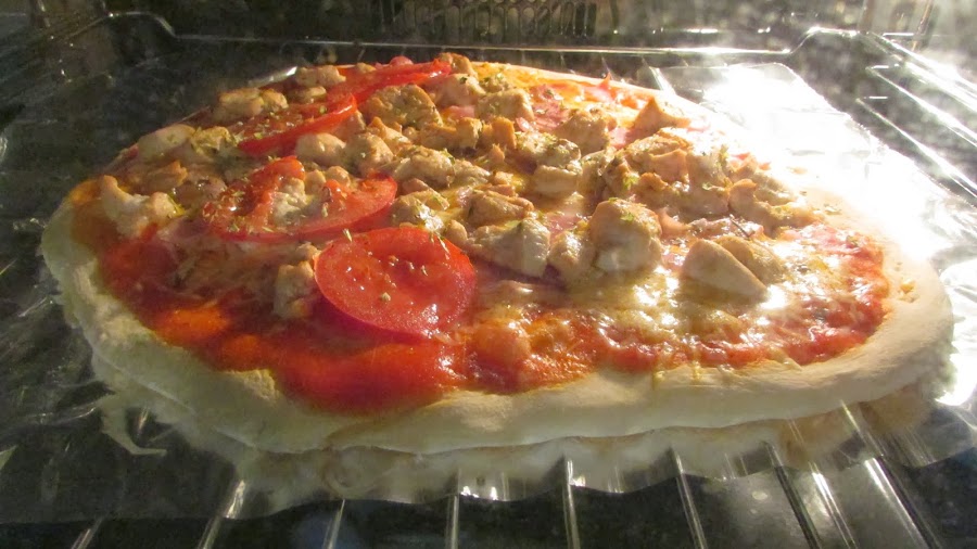 El tiempo lo calculo según veo el color de la pizza.. lo que viene siendo "a ojo" jaja. Serían unos 15 minutos, cuando la pizza este bien dorada por los bordes.