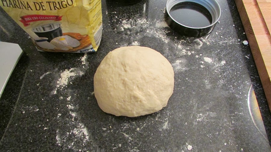 Cuando consigamos por fin una masa que no se pegue a los bordes es que ha llegado la hora de amasar a mano en una superficie lisa. Aquí es cuando de verdad interviene la paciencia y tener unos buenos brazos: amasar, amasar y amasar.