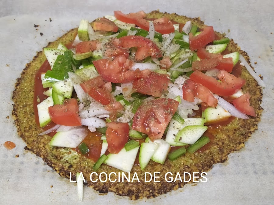 Orégano. En la base de brócoli añadimos la salsa de tomate, calabacín, la cebolla, el tomate, la albahaca, el orégano y el queso.Metemos al horno hasta dorar el queso.