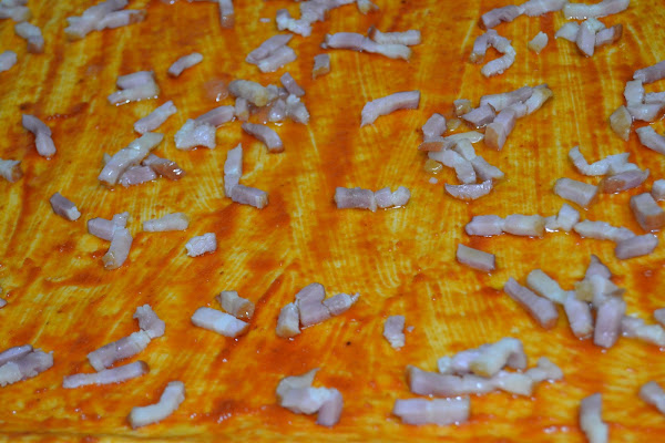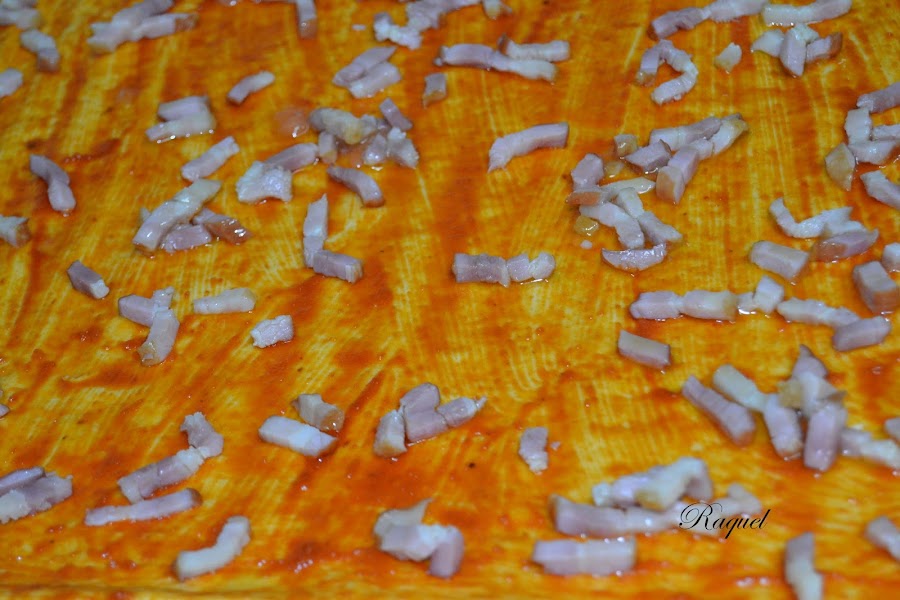 Repartimos el beicon por encima de la base de pizza.