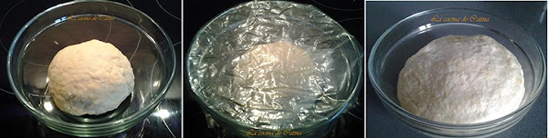 Poner todos los ingredientes en un bol, los amasamos a mano o con un robot y una vez amasados formamos una bola, la cubrimos con papel film y la dejamos reposar hasta que doble su tamaño.