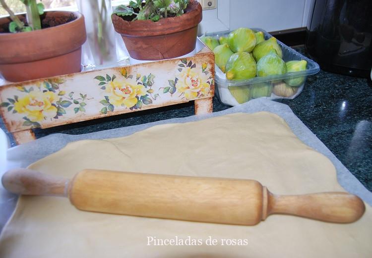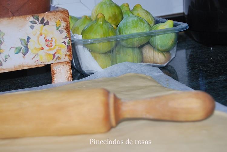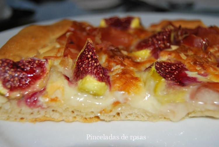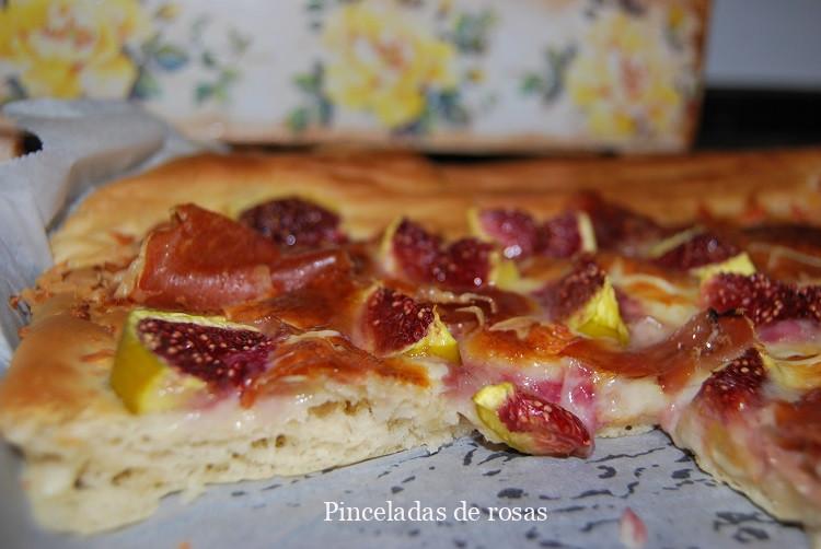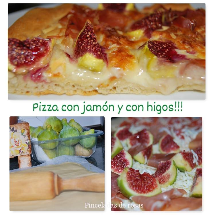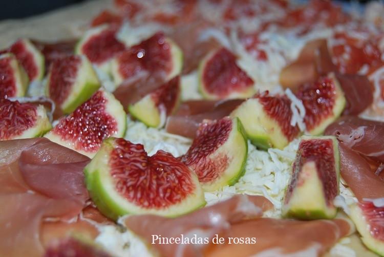 Masa de pizza casera bien reposada, con un rico jamón serrano acompañada de los deliciosos higos con su queso mozarela fresco y chorrito de aceite de oliva Virgen extra