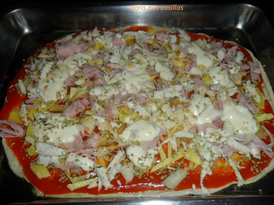 Llevar al horno hasta verla dorada y crujiente y servir de inmediato con un refresco y a disfrutar.