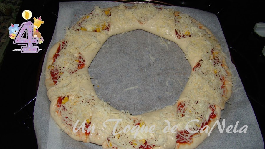 Extender el tomate por el exterior sin llegar al borde de la masa.
