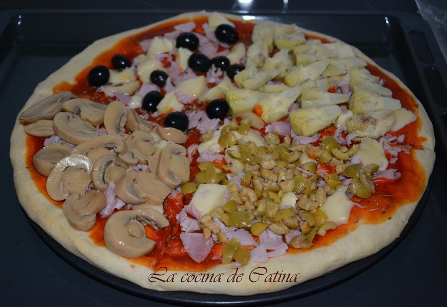 La masa de la pizza es muy similar a la que hacemos para cocinar pan blanco, si además le añadimos aceite de oliva o un poco de leche, se nos formará al cocerse una costra fina, crujiente y deliciosa. La masa de pizza la podemos tener preparada y congelada sola sin ingredientes precocinándola 7 u 8 minutos, dejamos enfriar y al congelador. Cuando la tengamos que utilizar simplemente la cubrimos con los ingredientes sin necesidad de descongelarla y terminamos de hornearla.