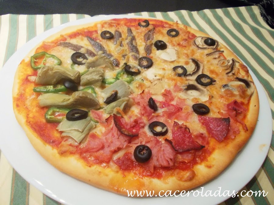Ya no hay excusa para hacernos una estupenda pizza 4 estaciones casera, para una cena especial, de fin de semana, que haréis las delicias de todos...