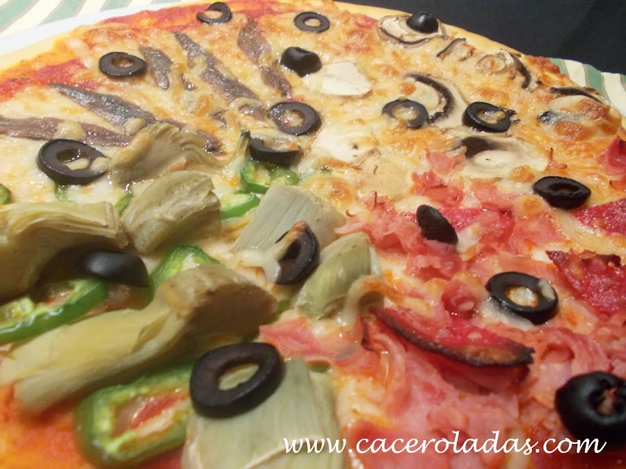 Tómate el tiempo para prepararla, haciendo una masa casera, que os dejo el enlace que hay en el blog Masa pizza, una deliciosa masa muy crujiente, y sencilla de preparar. Claro está que hay que llevar unos pasos, pero la verdad que el resultado es impresionante.