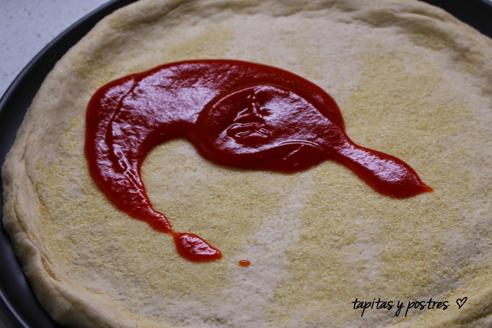 ¡Vaya acierto! Es una masa de esas gorditas, esponjosas, crujiente... riquísima! Ese toque que le da la sémola de trigo a la corteza de la pizza la hace irresistible.