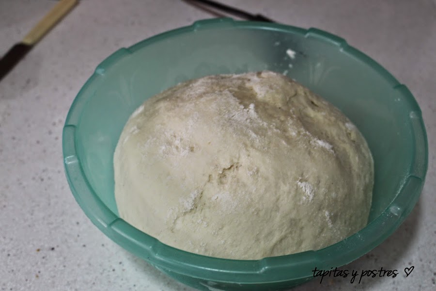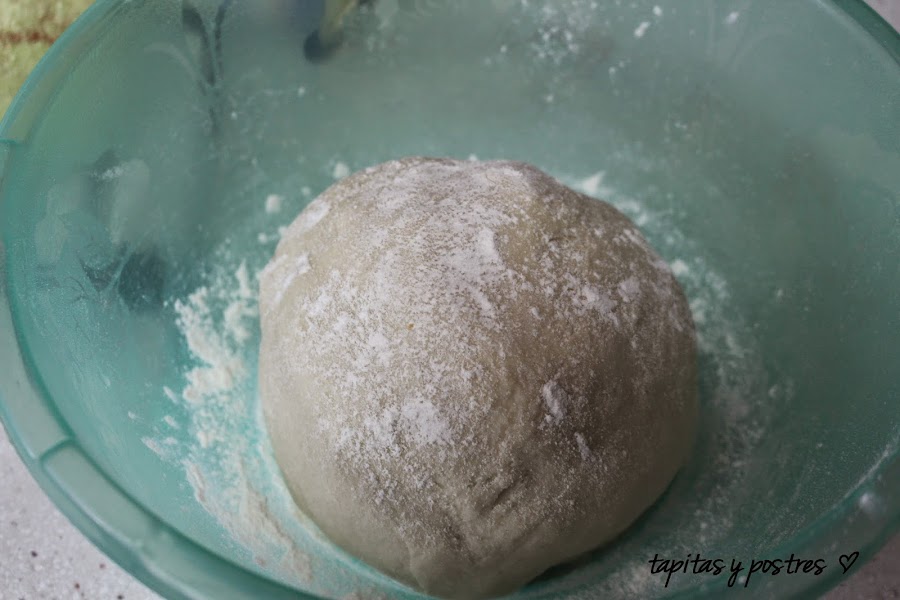 Hacemos una bola y la dejamos reposar en un bol con algo de harina.
