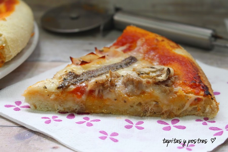 Desde que compré la thermomix, preparo la masa de las pizzas con la receta del libro. Nos gusta como sale, es fácil y rápido y cunde bastante, pero hace unos días curioseando por internet, encontré en el blog Merche cocinillas (que os recomiendo que visitéis), una masa de pizza que solo la foto lo decía todo. Ella a su vez, sacó la receta de un canal de recetas de cocina de Youtube, donde se asegura que es la misma masa que se usa en las famosas pizzerías tipo Pizza Hut, Domino...
