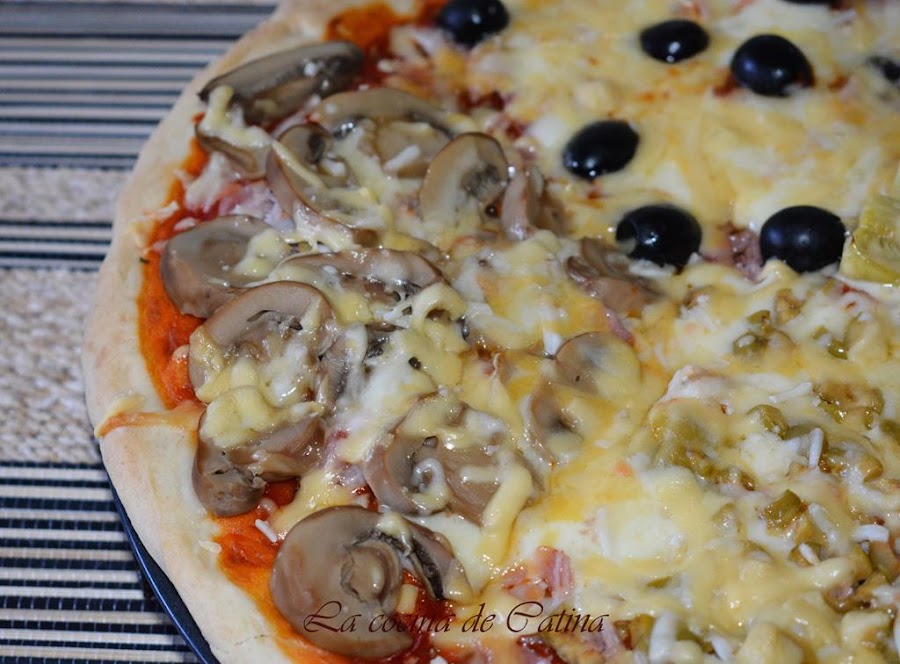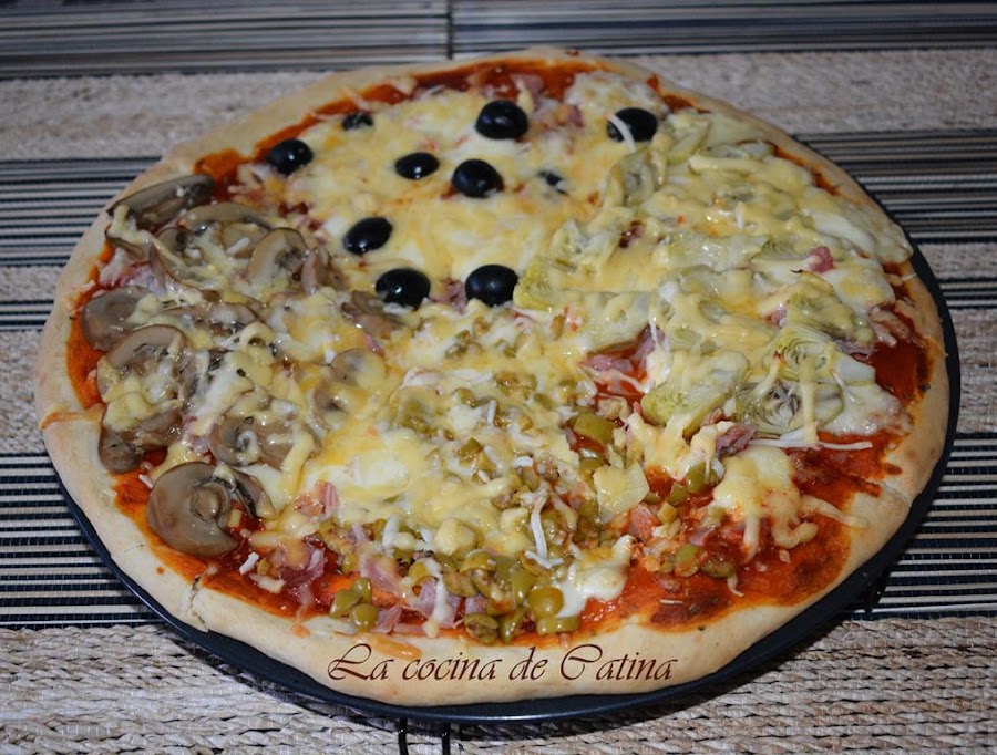 La masa de la pizza es muy similar a la que hacemos para cocinar pan blanco, si además le añadimos aceite de oliva o un poco de leche, se nos formará al cocerse una costra fina, crujiente y deliciosa. La masa de pizza la podemos tener preparada y congelada sola sin ingredientes precocinándola 7 u 8 minutos, dejamos enfriar y al congelador. Cuando la tengamos que utilizar simplemente la cubrimos con los ingredientes sin necesidad de descongelarla y terminamos de hornearla.