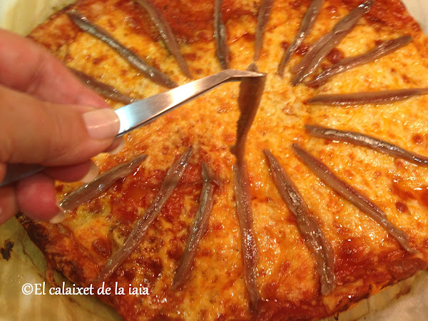 escurriremos las anchoas y las iremos colocando a nuestro gusto sobre la pizza