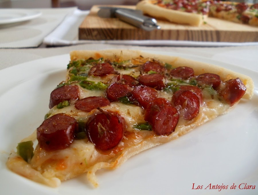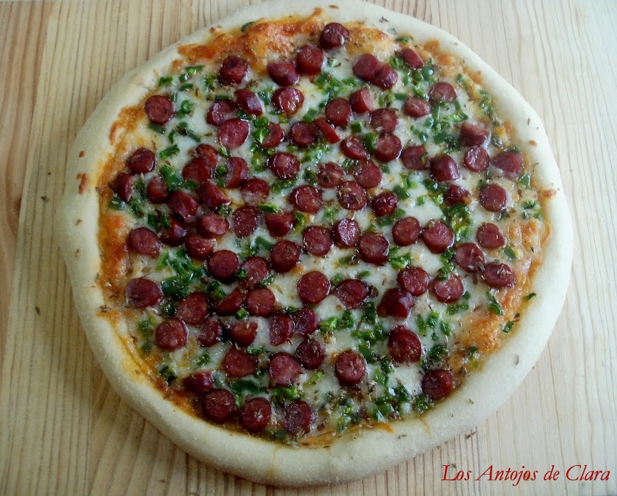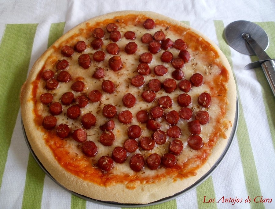 Definitivamente las pizzas que más me gustan son las que preparo en casa con la ayuda de Mr. Antojo, él se encarga de la masa, mientras que yo me ocupo de la salsa y los ingredientes de la cubierta. Esta vez hicimos pizza de cábano, hacía muchos años que no comía estas salchichas, así que proveché mi reciente viaje a Colombia para traerme un par de paquetes. Los cábanos son salchichas ahumadas y secas que se elaboran con carne de vacuno o con mezcla de cerdo y vacuno. A mí me encantan, tienen un sabor ahumado muy pronunciado y están buenísimas en la pizza.