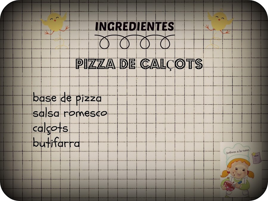 Los ingredientes, pues depende de lo que os queráis complicar. Podéis comprar la base de pizza hecha o hacerla vosotros mismos. La salsa romescu, más de lo mismo, comprar la salsa que ya viene hecha o hacerla vosotras.