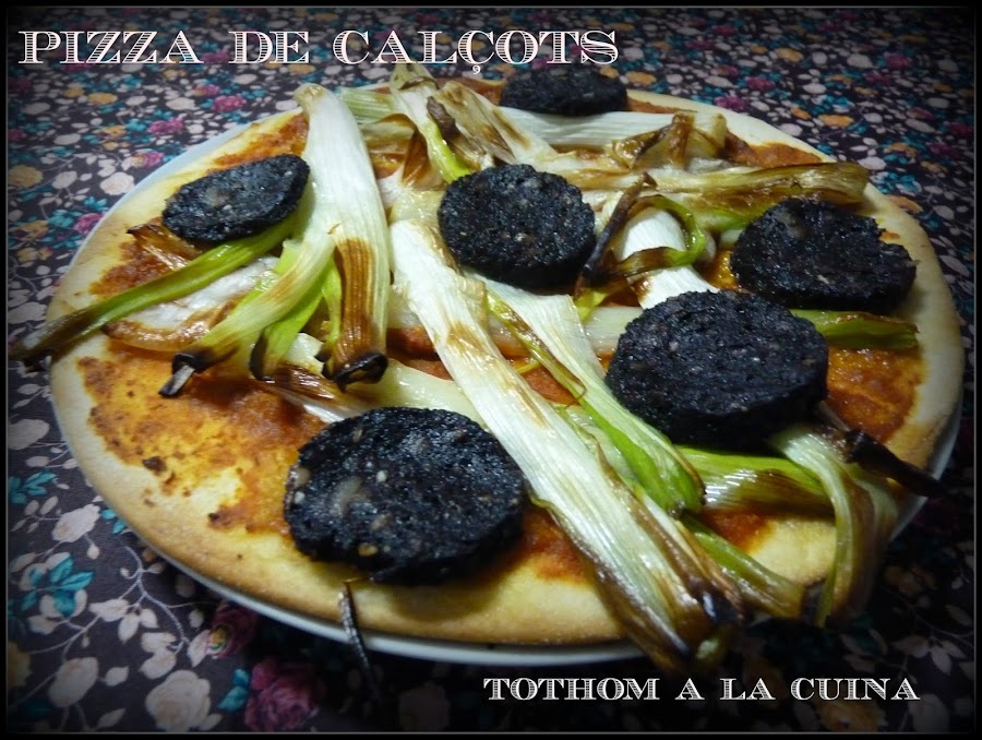 Pues ya tenemos todo, y aquí os presento la pizza de calçots, jijiiii