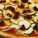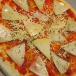 Con una cucharilla vamos sacando unos pegotitos de sobrasada y repartiéndolos sobre toda la superficie de la pizza, regamos con un hilillo de aceite de oliva y ponemos un poco más de queso rallado.
