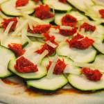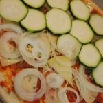 Lavamos nuestro calabacín y hacemos rodajitas finas con piel y todo, lo colocamos sobre la cebolla y ponemos una pizca de sal y un poco más de orégano.