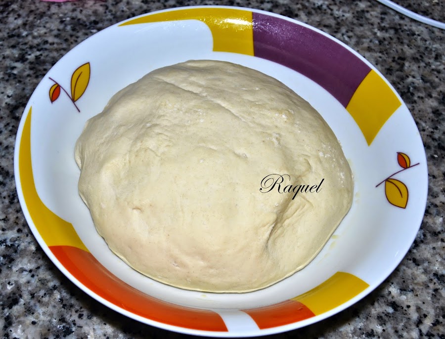 Ponemos a calentar el agua a de estar tibia no caliente, desmenuzamos la levadura en el agua y lo mezclamos hasta estar bien disuelta y la echamos en el centro, ahora vamos removiendo con la amasadora hasta que ya vemos que este lista, ahora toca ya amasar con las manos durante unos minutos, espolvorear un poco con harina la zona donde se va a trabajar o sea en el mármol y para amasarla bien hay que extenderla y doblarla y así continuamente, después hacemos una bola y la pondremos en un bol que habremos untado previamente con unas gotas de aceite, así luego no se pegara la masa cuando halla fermentado.