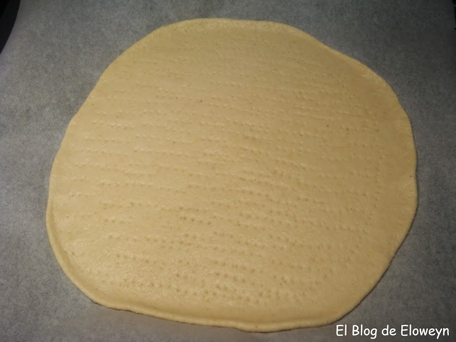 Pinchad la masa excepto los bordes con un tenedor. Esto evitará que suba demasiado (Esto es opcional)