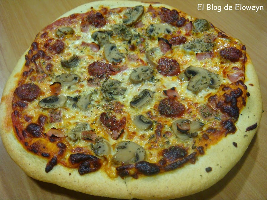 Jejeje... ¡Me encantan las pizzas!. Si por mi fuera, sobreviviría a base de pasta y pizzas, pero el sentido común me dice que no puede ser. Pero eso no quita que de tanto en tanto coma alguna. Hace un montón de años que tengo esta receta escrita en un papel y guardada en mi carpeta de "recetas pendientes de hacer". De hecho, esta carpeta está tan abultada que al final tuve que buscarme otro modo de guardar las nuevas recetas pendientes de hacer.