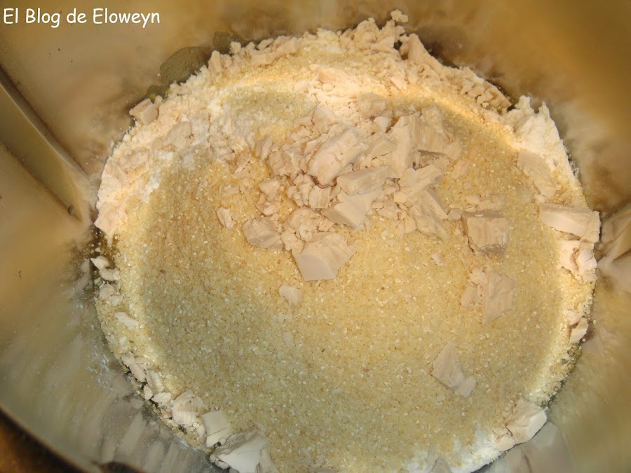 Me llamó la atención el hecho que no fuera la típica masa de pizza hecha con los ingredientes de siempre. Esta, además de los ingredientes de siempre, también tenía sémola de trigo. Guardé la receta y ahí se quedó hasta esta semana pasada que, aprovechando que tenía desde hace tiempo un paquete de sémola de trigo, decidí hacerla (¿Ya iba siendo hora, no? jajaja).