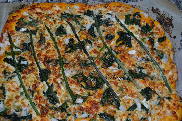Después la Mozarella y ponemos los espárragos por encima y espolvoreamos con la albahaca.