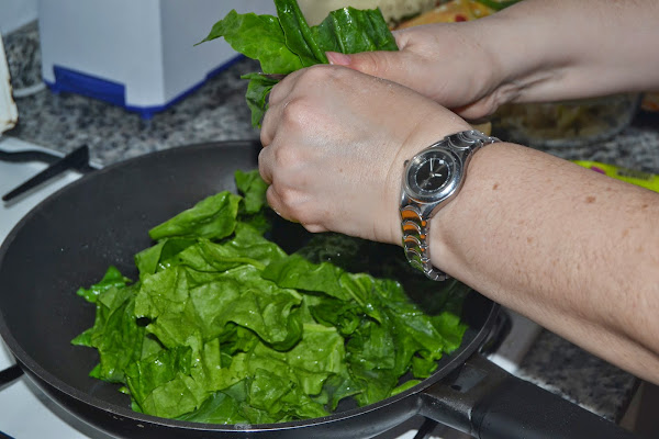 Mientras hacemos las espinacas, las lavamos y las cortamos ponemos un poco de aceite.