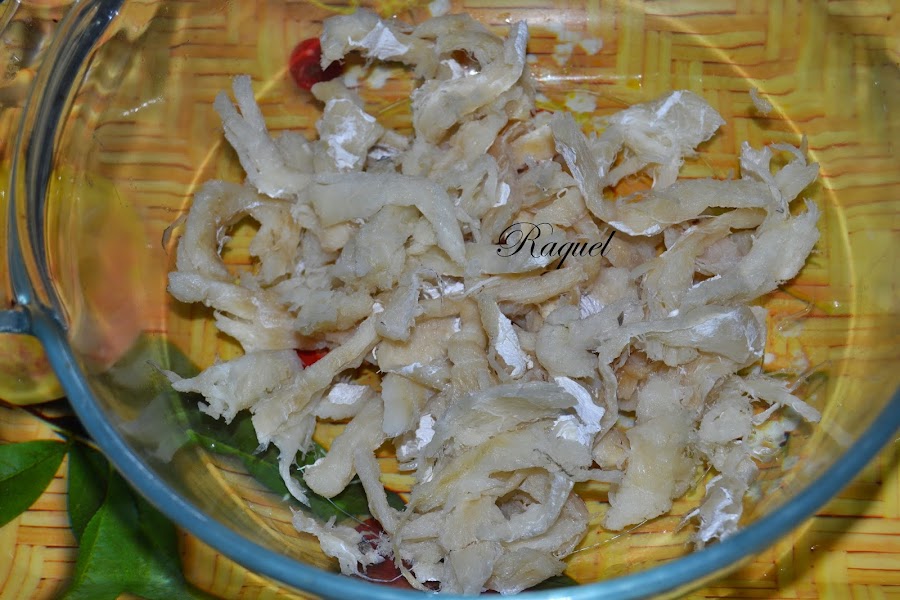 Desmigamos el bacalao una vez desalado.