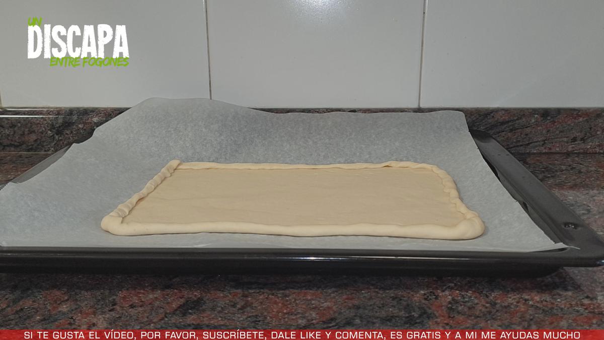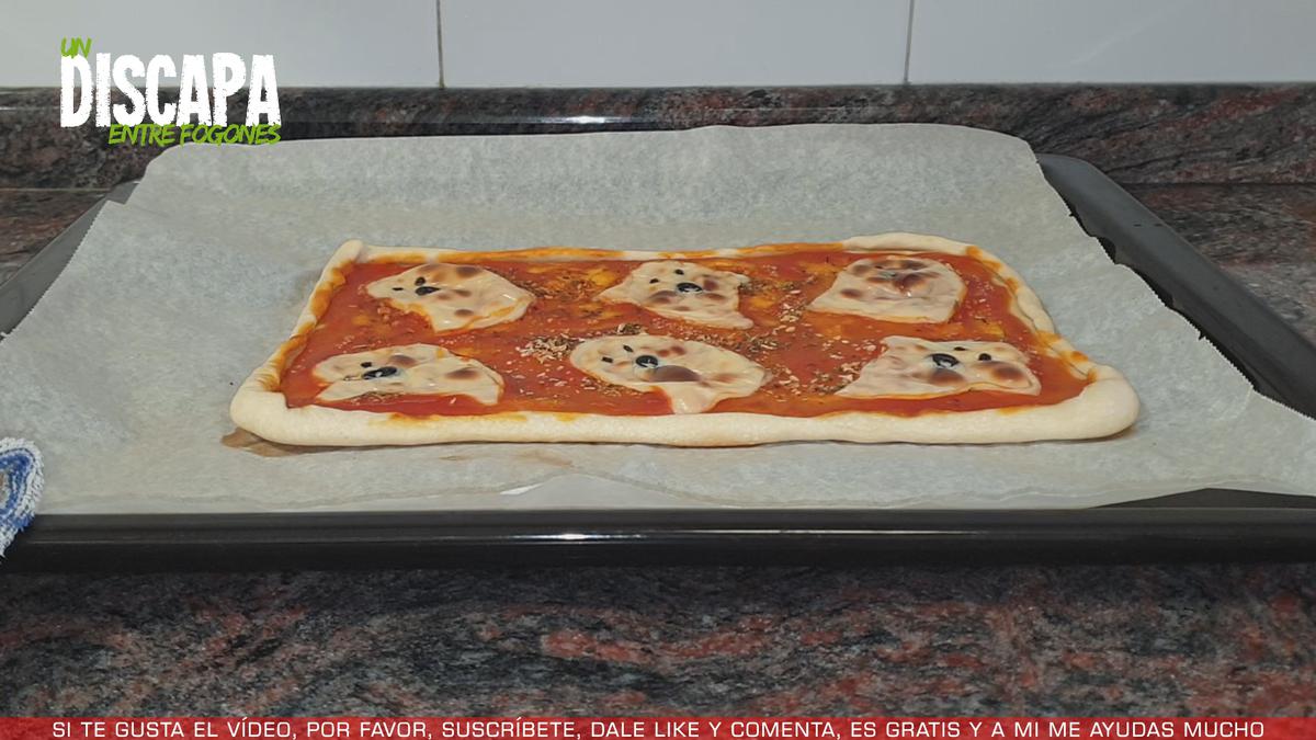 3Ponemos salsa de tomate por toda la superficie de la pizza y le ponemos orégano, cebolla en polvo y ajo en polvo.