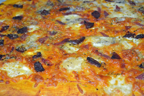Como ya sabéis en casa se cena todos los viernes pizza y procuro hacerlas variadas para no repetirlas, bueno de las de queso, siempre hay una porque es la preferida de mi hija y nunca falta, con mas o menos quesos pero nunca falta una de ellas.