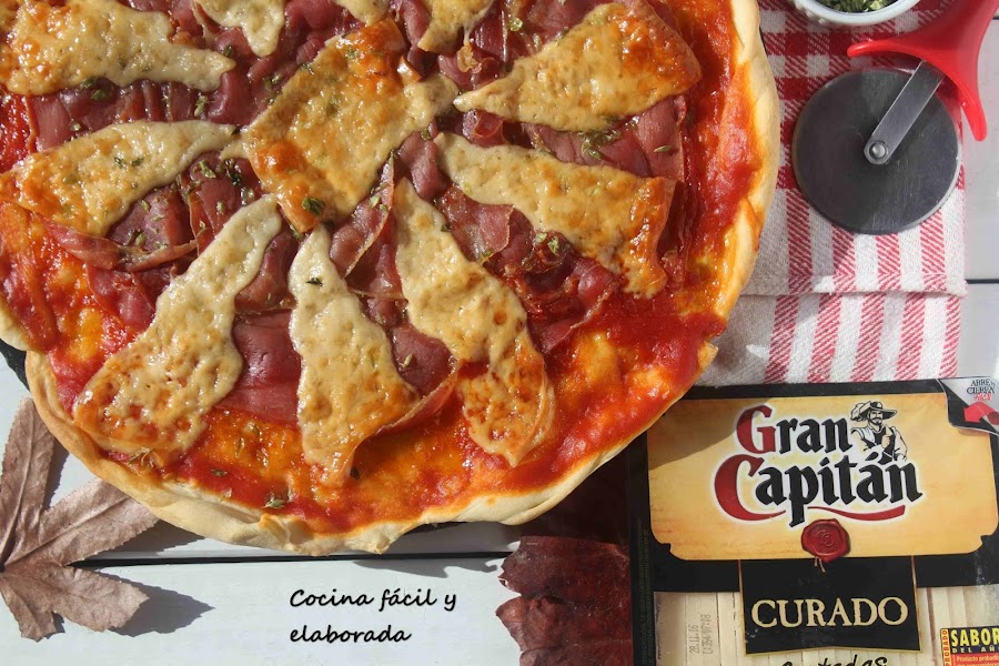 que tiene, jamón serrano y queso curado. El queso curado Gran Capitán tiene una curación de más de 5 meses de maduración. Combina leche de oveja y vaca. Sabor intenso, textura firme y un aroma increíble. Si queréis saber más datos y ver un poco su historia mirad la web Quesos Gran Capitan . Con la campañas de Youzz.net , he recibido un kit de varias cuñas para probar y estoy preparando varias recetas, aunque el queso de por si no necesita nada, solo un poco de pan o unos picos, una cerveza o un refresco y a disfrutar.