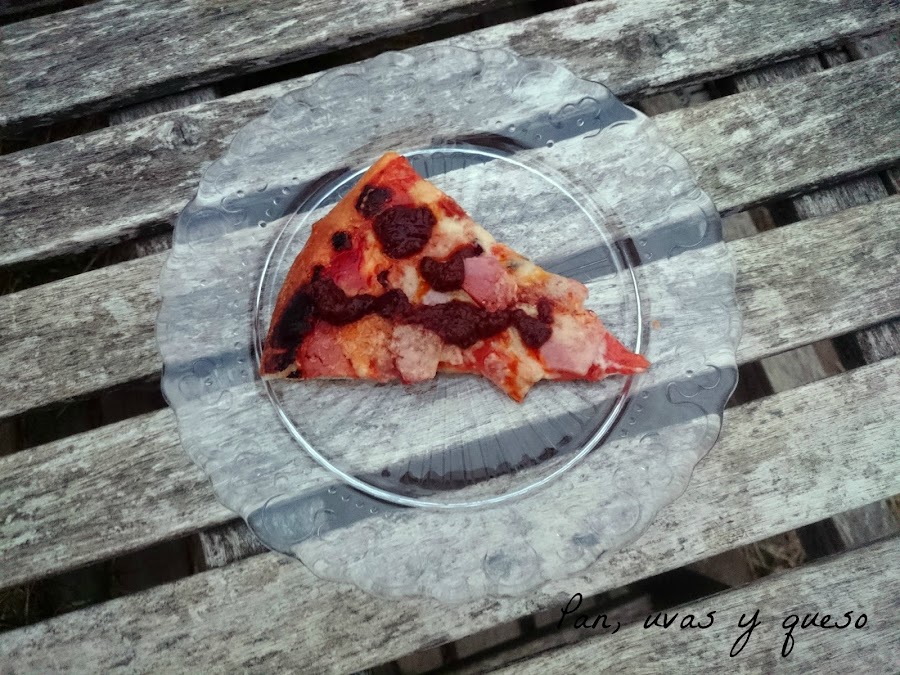 Como la pizza es un plato fijo de nuestras cenas del viernes, cada semana procuro innovar en los ingredientes que le pongo. En esta ocasión quise probar con el lacón cocido que tenía en la nevera. Y, además, aproveché la salsa picante que había preparado unos días antes.