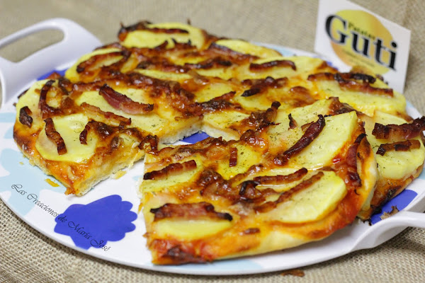 Hace unos días me mandaron unas patatas, muchas gracias a Patatas Guti por colaborar con mi blog, en cuanto me llegaron lo primero que me vino a la cabeza fue hacer una pizza y aquí la tenéis. Estaba riquisima. Os aconsejo que la hagáis y me contéis, estoy segura que os gustara.