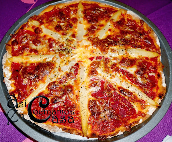 Lo que no se esperaban era una pizza con pimientos y espárragos. Está buenísima, gustó a todos y es tan sencilla de hacer como la mayoría de las que hago.