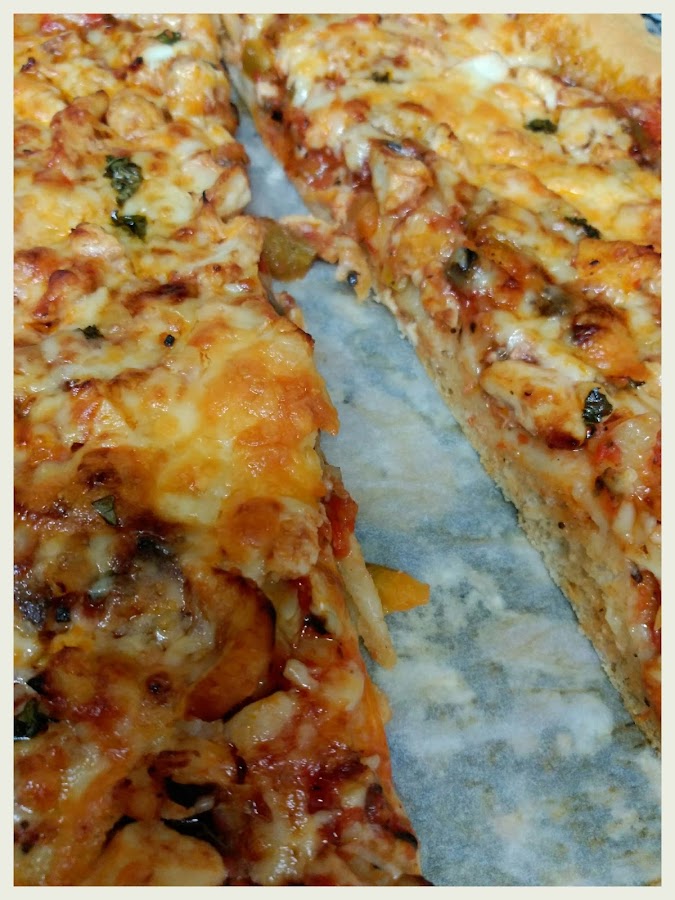 PIZZA DE POLLO Y VERDURAS A LA BARBACOA