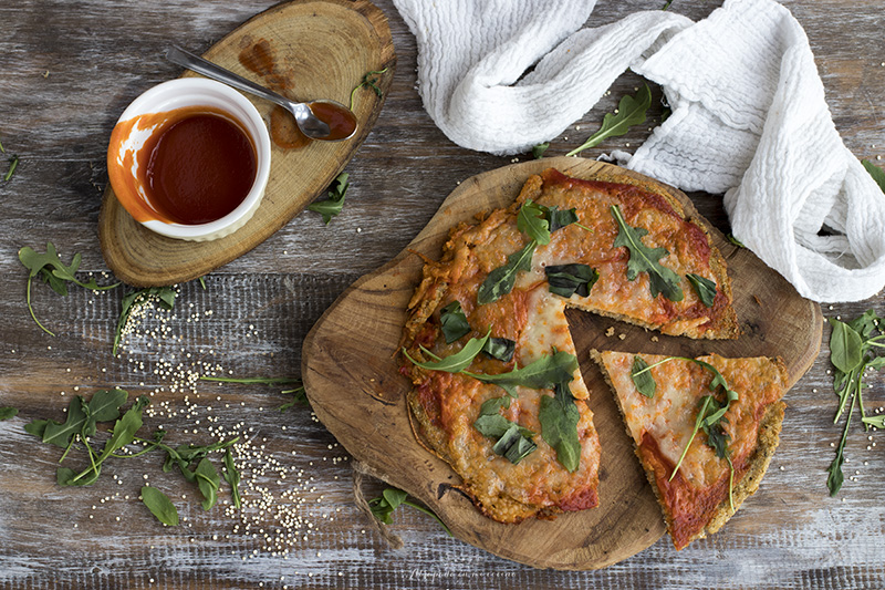 Hace ya unos años que la quinoa llegó a mi casa y la he usado el muchas recetas como esta ensalada o esta hamburguesa que tengo publicadas. Hoy le llega el turno a otra propuesta riquísima que me sorprendió al ver en Pinterest en varias versiones y me puse manos a la obra con ella. En mi casa ha gustado muchísimo, mi hija dice que otro día la tengo que hacer más completa porque está riquísima con sólo estos ingredientes. Y es que no he querido decorarla mucho, porque para mi lo curioso de esta receta es poder preparar una riquísima masa de pizza con la quinoa.