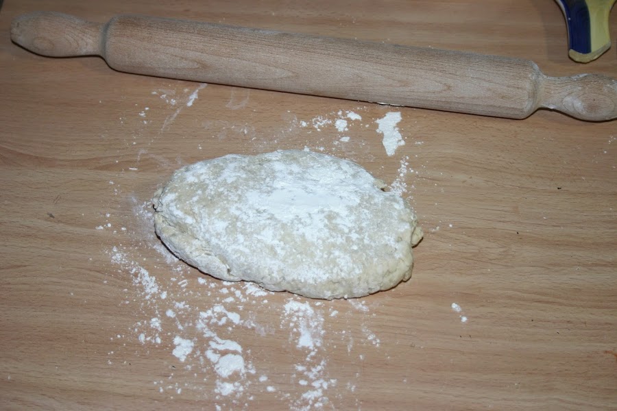 Una vez que esta la masa, echaios un poco de harina en la encimera y con un rodillo la vais extendiendo