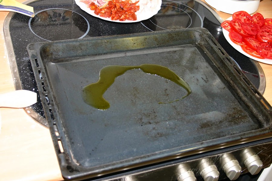 en la fuente de horno poneis un par de cucharadas de aceite