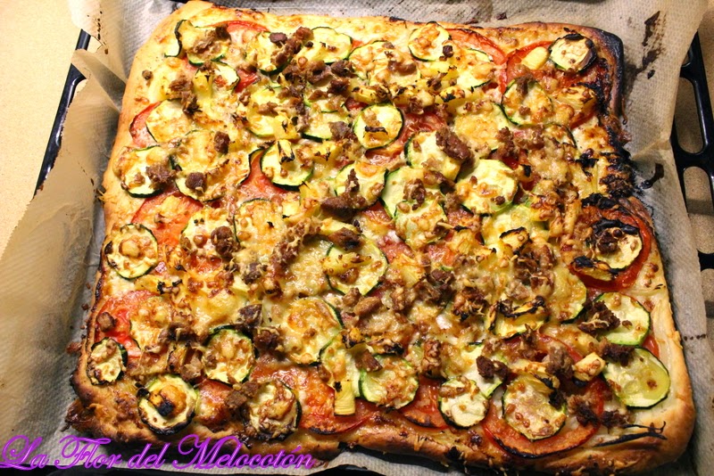 Olé yo! Anoche pasé de no saber que hacer para cenar a tener esta maravillosa pizza de verduras y atún. A Alberto le gustó un montón pero con Gorka... ay Dios mío! cuando se le mete una cosa en la mollera no hay quien se la saque! Decidió sin probarla que no le gustaba y al final acabó en la cama casi sin cenar. Pero estaba buena. Muy buena!