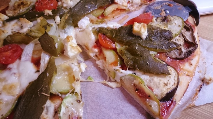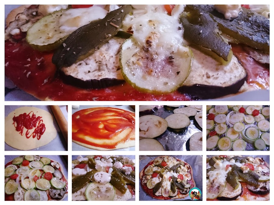 Tenía algunas verduras que me habían sobrado en la nevera de otros platos que he cocinado a lo largo de la semana. Así que, las ase un poco y prepare con ella esta deliciosa pizza.
