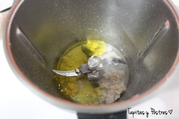 Sin lavar el vaso, ponemos el agua, el aceite y la levadura y mezclamos 1 minuto a velocidad 2.