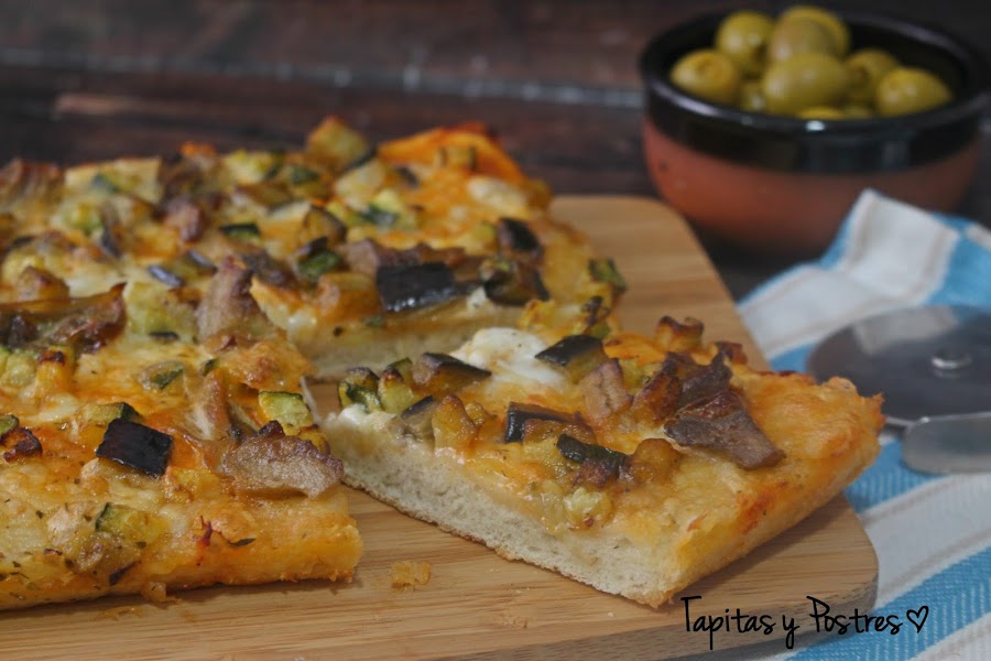Y este es el resultado. Una pizza/focaccia increíblemente rica.