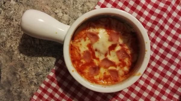 Metemos al microondas por 1 minuto y sabremos que está listo cuando el queso esté burbujeando, con 1 minuto o 1 minuto 15 segundos bastará.