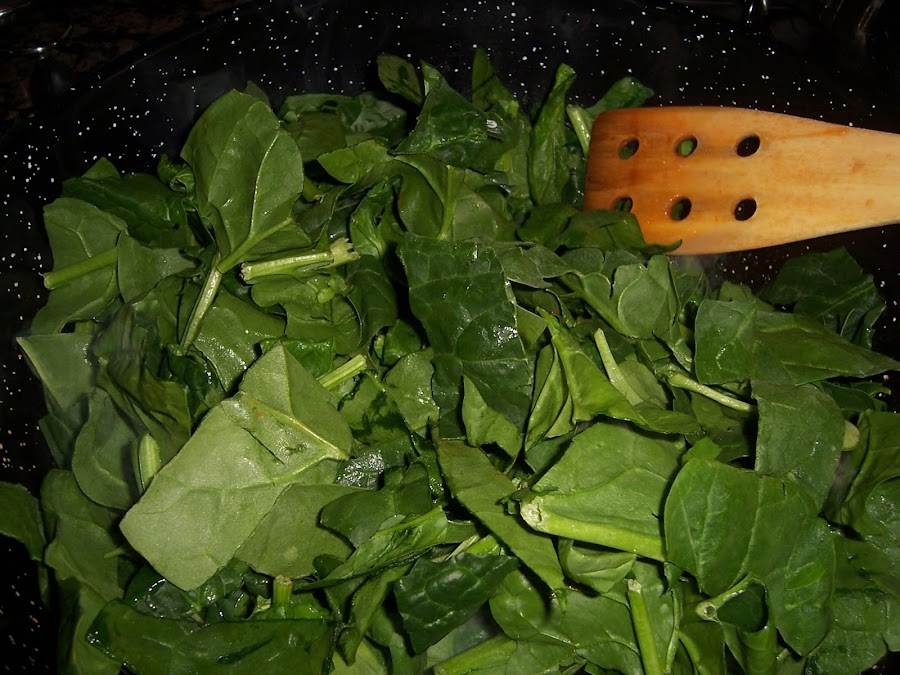 Salteamos la espinacas con un chorrito de aceite hasta que suelten todo el agua y reservamos.