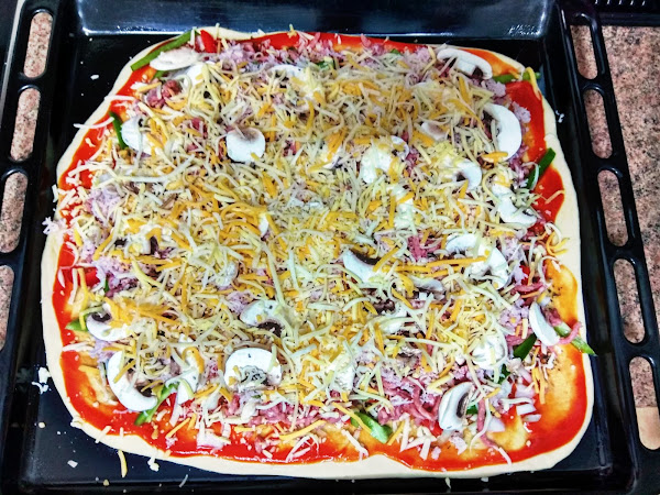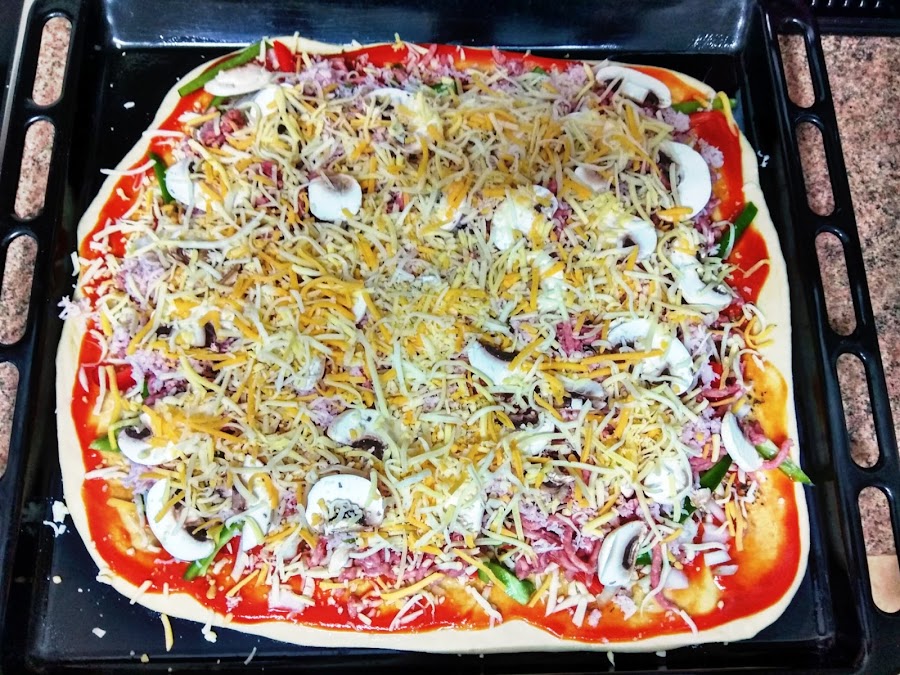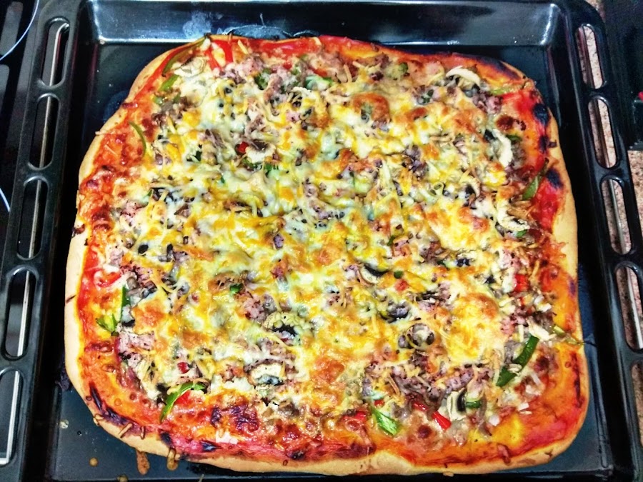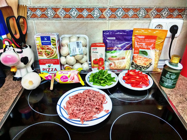 En este recetario que estamos construyendo poco a poco no podía faltar sin duda una de mis pizzas favoritas, la especial de la casa by Cris, una pizza que se parece a la famosa especial de la casa del Telepizza, sólo que esta al ser casera con ingredientes frescos y naturales es mucho más sana, también he sido bastante generosa con los ingredientes que he puesto a la pizza en cuanto a cantidades (ande o no ande caballo grande) y sinceramente esta riquísima no tiene nada que envidiarle. Para haceros esta receta he usado dos de los productos con los que nos obsequiaron en el evento BVDONOSTIAGASTROHOGAR la harina para pizza de Harimsa y el aceite de oliva Cornicabra de Oliveclub. Vamos a comenzar.
