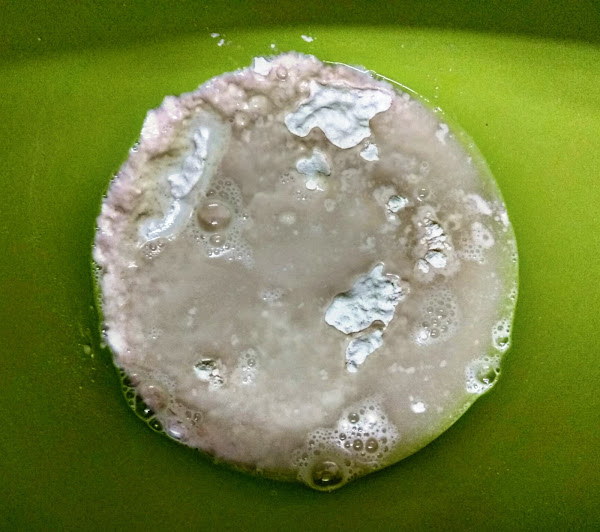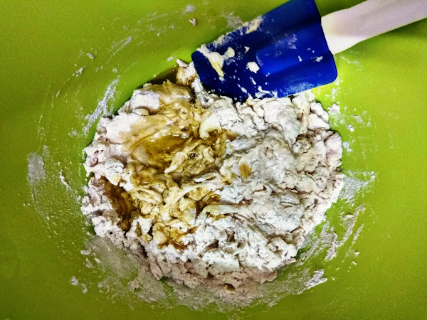 Añadimos 125ml de agua tibia y mezclamos durante un minuto con una espátula.