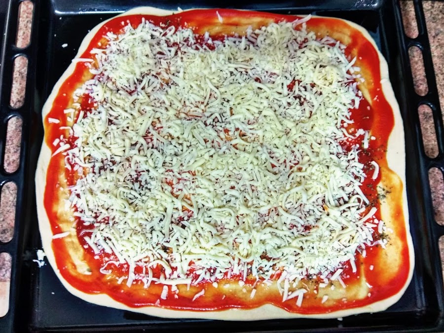 Cubrimos toda la pizza con la mozzarella.