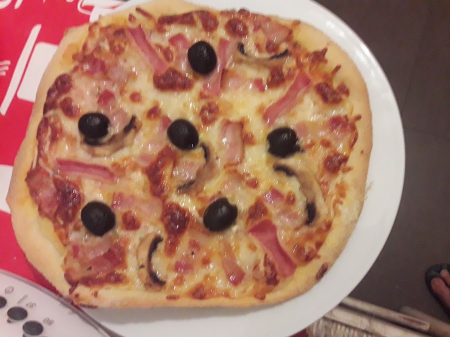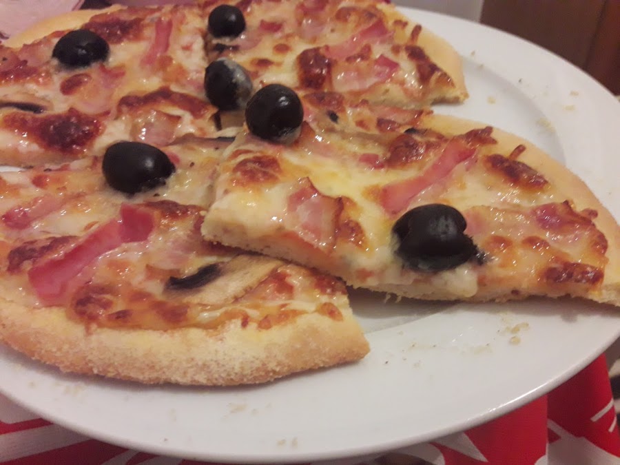 Hoy para cenar hice esta pizza estilo dminos pizza es las mas buena que he provado de todas las pizzerias y esta es casi identica os la recomiendo la probeis es crujiente y sabrosa.